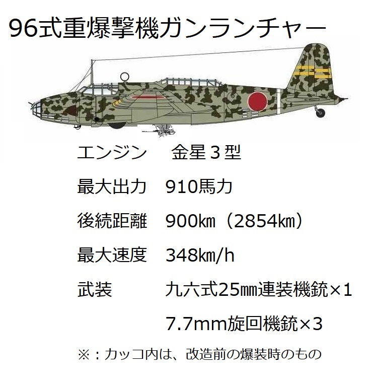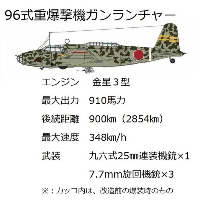 爆撃機には爆弾を搭載しない代わりに爆弾倉から九六式25㎜機銃が逆さに取り付けられていた。