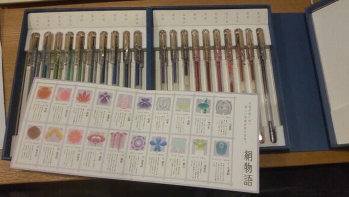 この物語のイメージソースになったのは、ぺんてるさんのボールペンセット「絹物語」です。