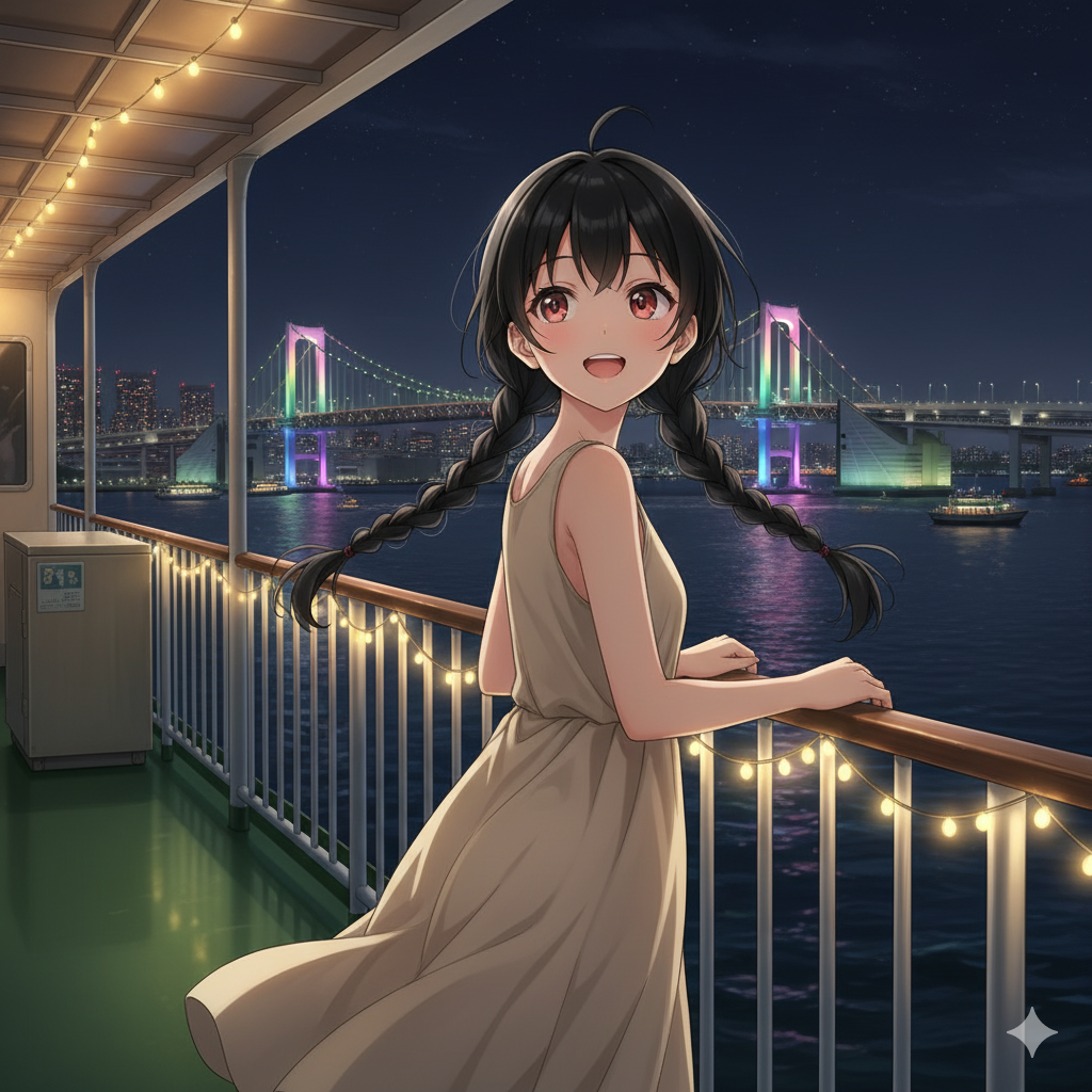伊美島にいたころでも瀬戸大橋は見たことがあるが、レインボーブリッジの真っ白な橋は電飾で光り輝き、甲板の大勢の乗客が歓声を上げていた。