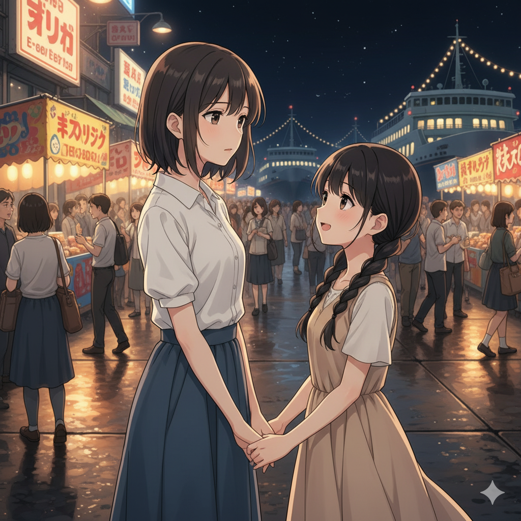 船内は、無数の乗客がひしめき合い、人々の話し声と笑い声、そして潮風と船のディーゼルの匂いが混ざり合って、むっとした熱気に満ちていた。