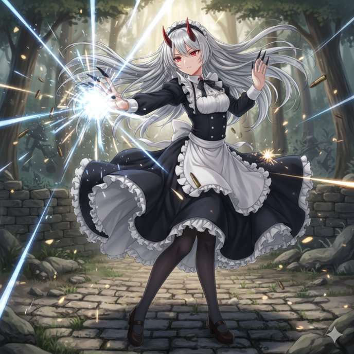 その時僕は少し離れた所で、あの銀髪の少女がフリルのついたメイド服姿で座っている後姿を見つけた。