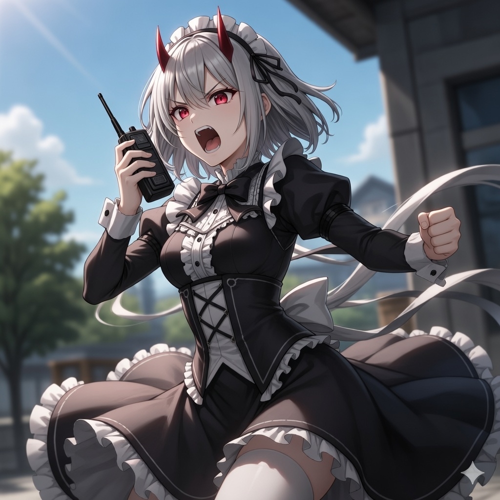 彼女が無線機で誰かと怒鳴りあいをしている。