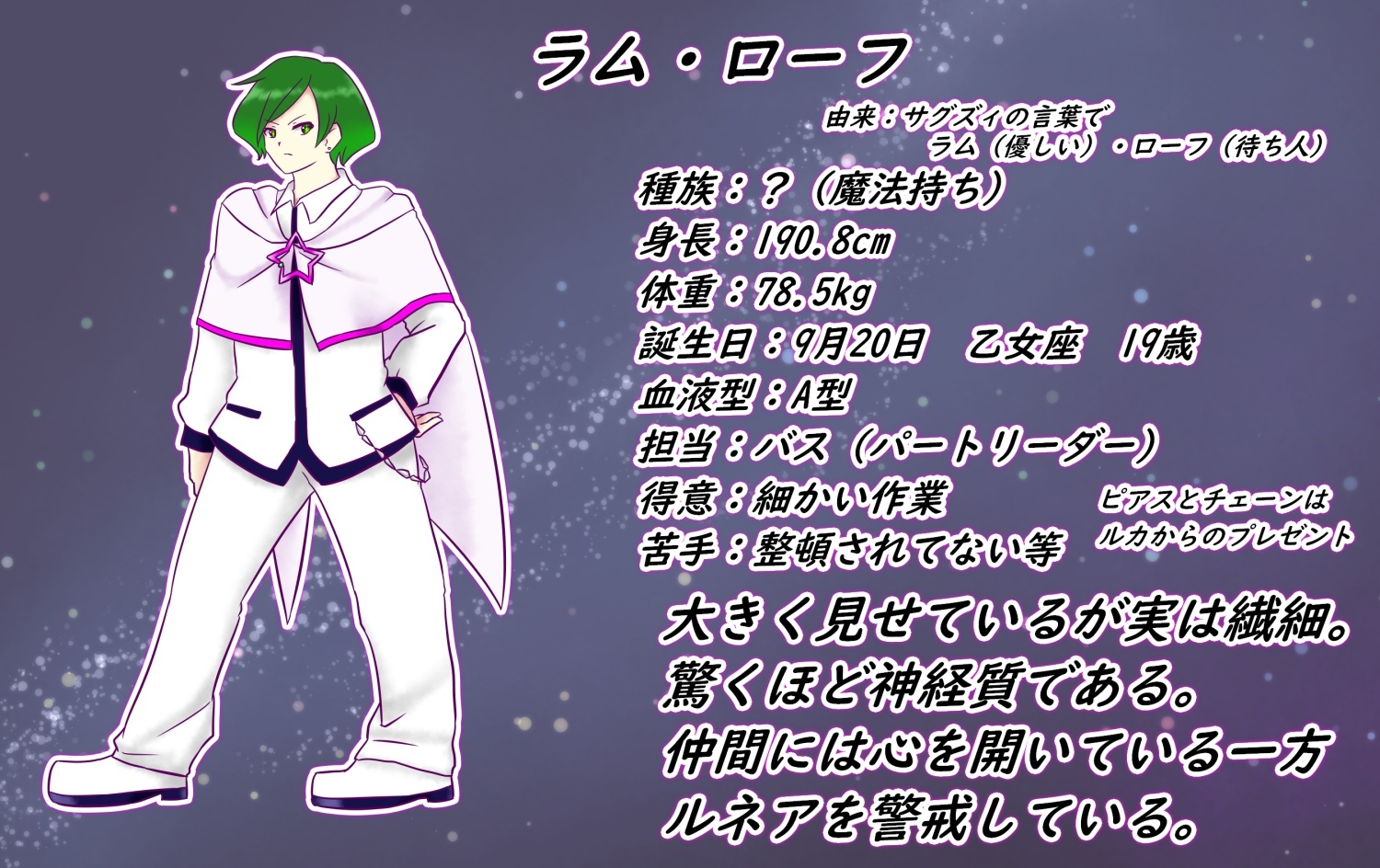 見た目は落ち着いていて、ハイネックの白い制服にラムやシナと同じケープを着ていた。