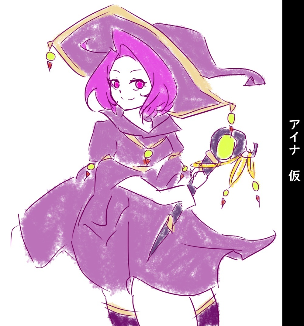 魔女の服を来た、紫色のボブヘアの少女。