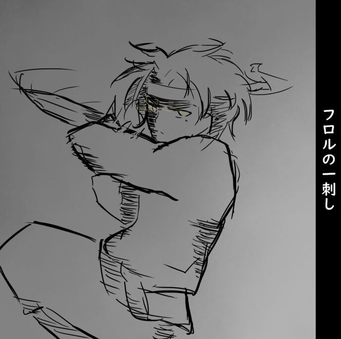 数人がフロルの方に飛んできたので、フロルは無情にも飛んできた男達全員の首を切って失血死させる。
