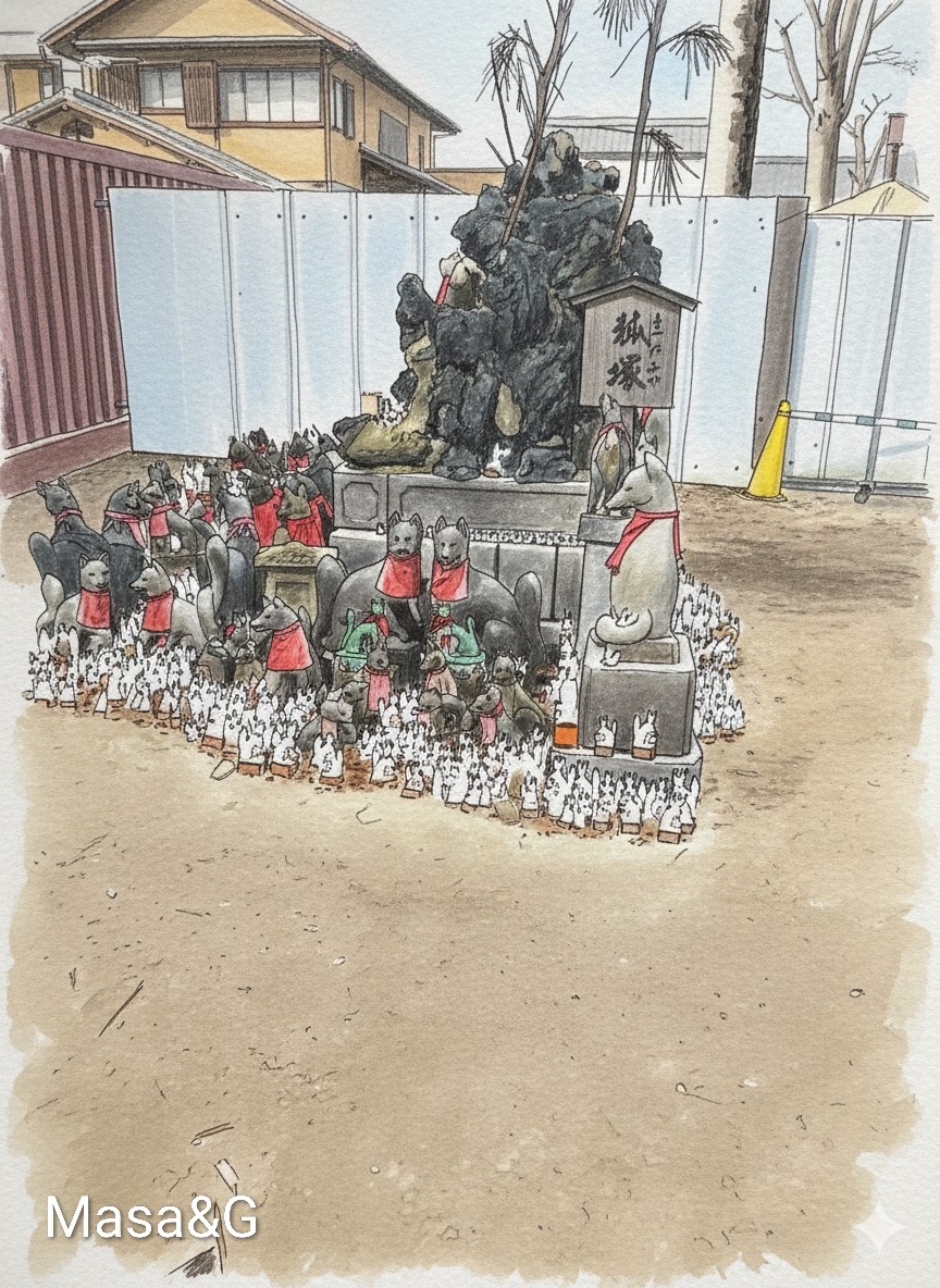 その前には、誰かが置いていったのだろう、小さなお狐様たち。