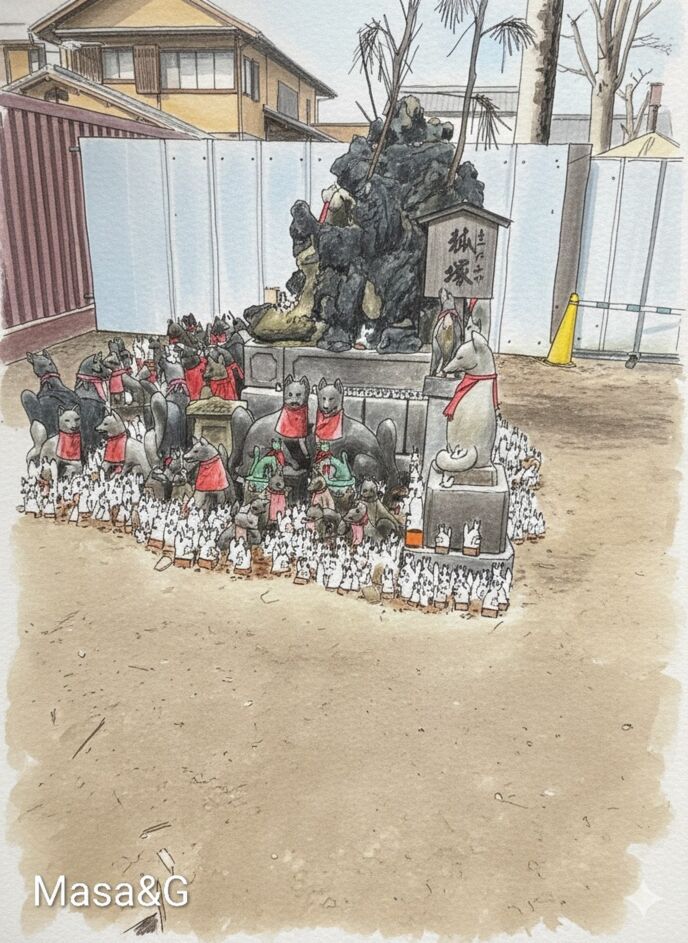 その下―― 小さなお稲荷様の祠が、いくつも並んでいる。