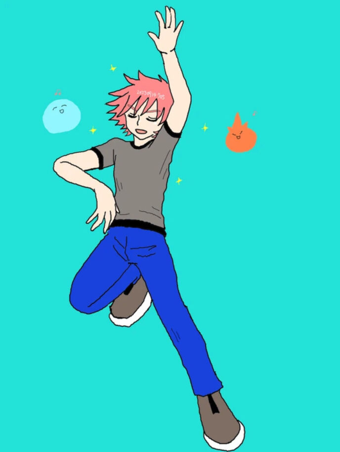 魔伝盤から出てきたガイドさんは空色でまん丸の身体をしていて、小さな目と口があったんだけれど、目はしょぼしょぼしているし口は半開きで何事かうめいていた。僕の手の上でぐでんぐでんにのたうち回っている。