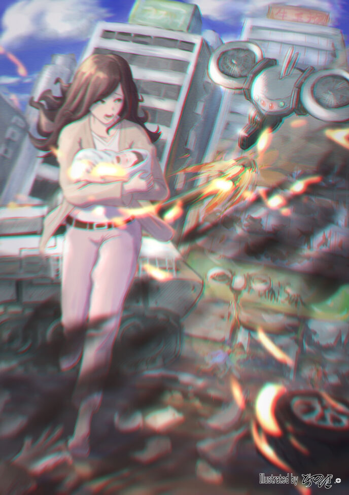 日本国内保有の防衛装備も例外ではなかった。街中のビルを縫うように、小銃を装備した数機のドローンが飛び交う。平和に慣れ過ぎたこの国では、初めこそ人々はそれらを珍しがった。若者が好奇心で向けるカメラ。それが惨劇の始まりを記録する。