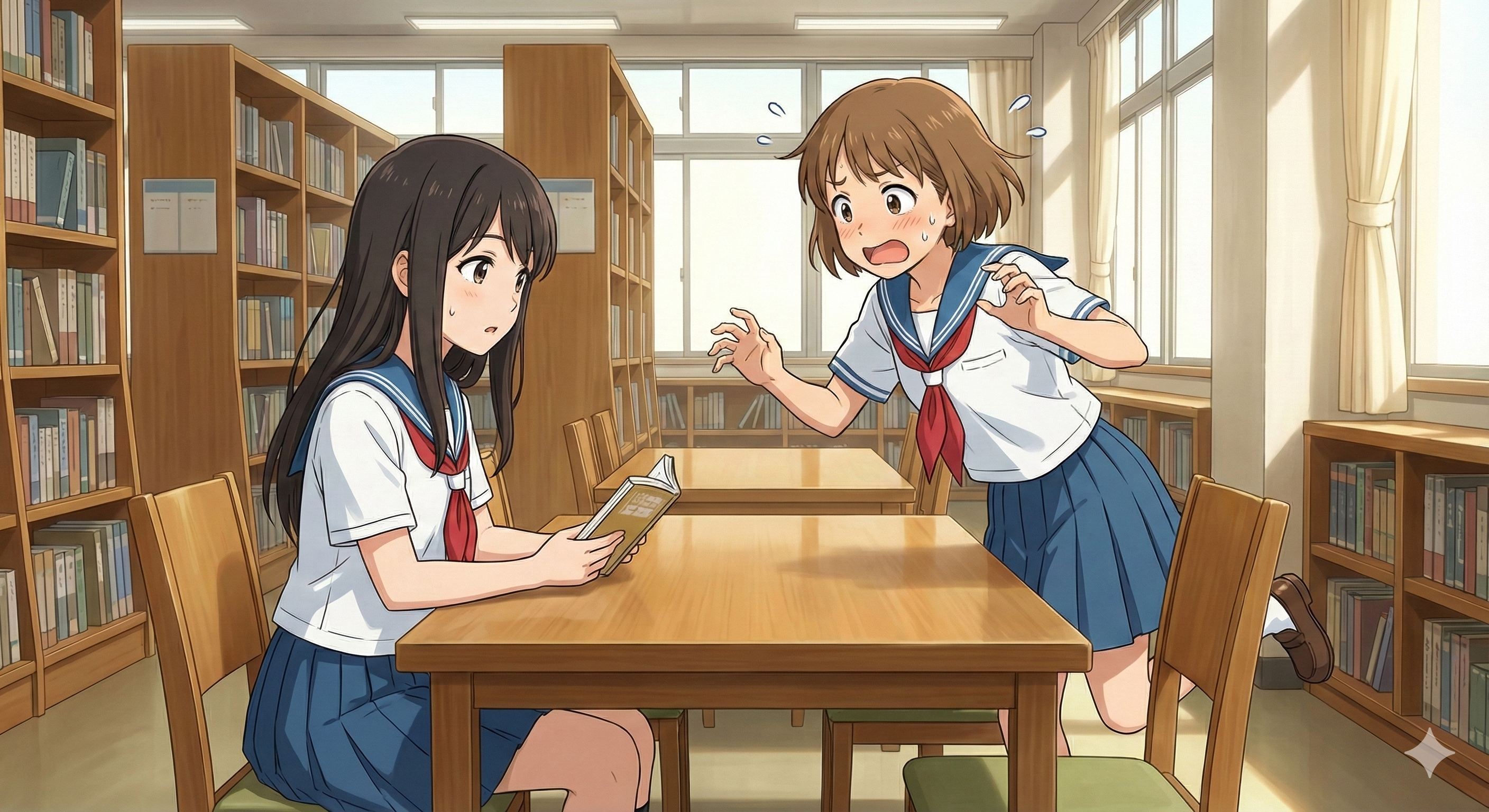 放課後の図書室。私は窓際のカウンター席に分厚い専門書を広げて、静かな時間を味わうつもりだった。