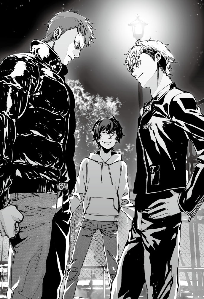 このときになってようやく、ぼくは言い訳の言葉を口にしようと考えた。だが、いままでに経験したことがないほどの体の疲労感と、上がる息、そして不良を前にしたときの圧倒的緊張感から、まともな言葉が出てこない。