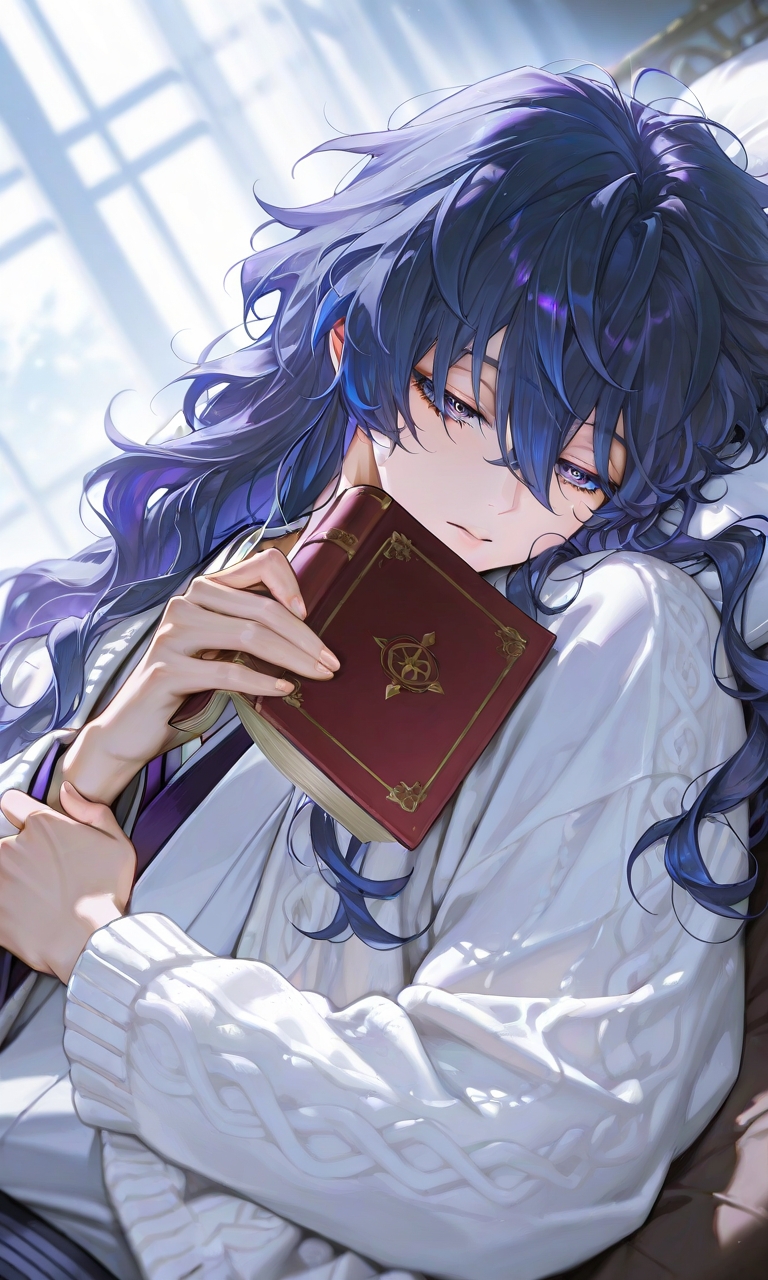 本を持ち長い髪の眠るシュミットは可愛い以外の言葉がない。