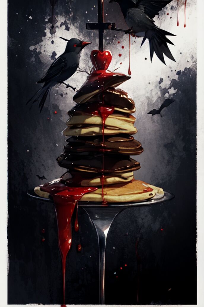 腕を捻り上げられた男から手を離した頃にはカラスがぶっ刺さり真っ赤な血が滴るパンケーキを差し出された。