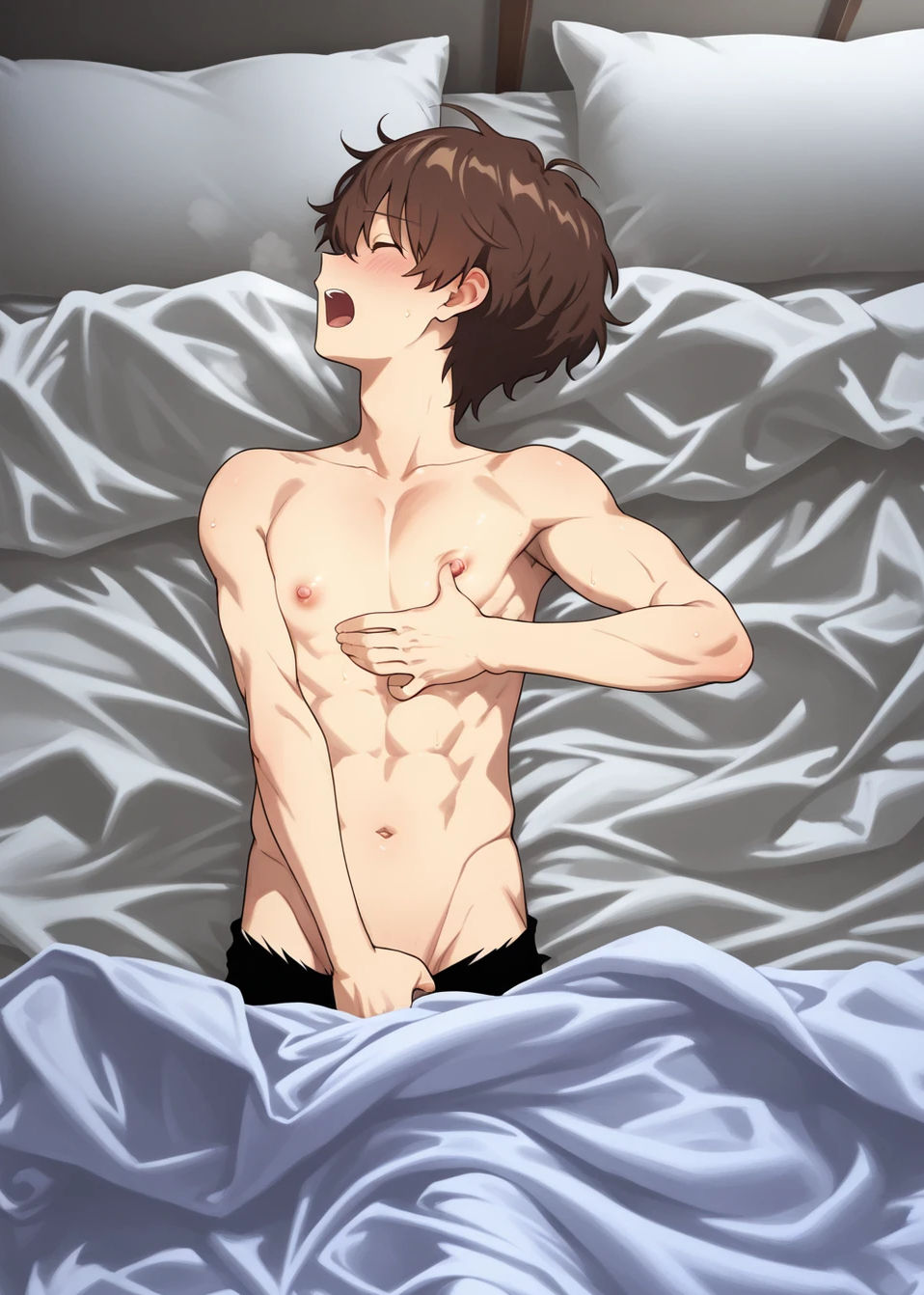 茂が果てた瞬間、彼の体が脱力してベッドに沈んだ。「はぁ…悠利、すごい…」と息を切らしながら笑う彼の顔が、なんだか愛おしくて、胸がぎゅっと締め付けられる。