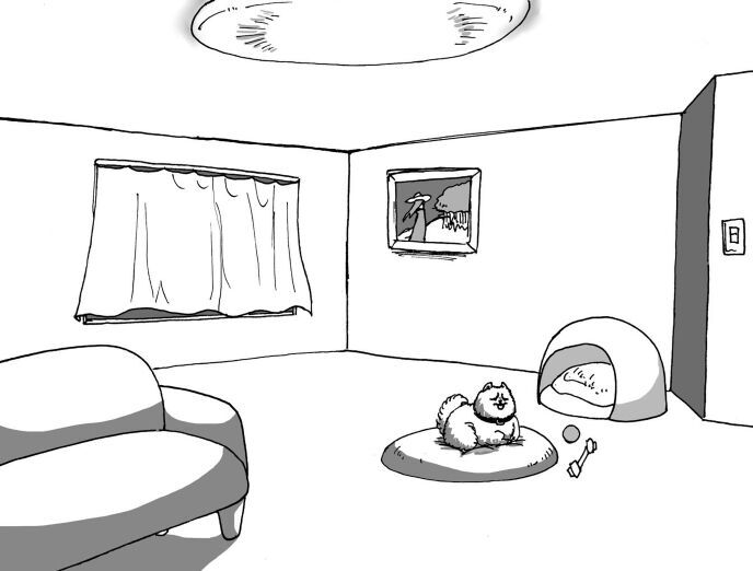 少女の家の中を見渡したポチは静かに脱走を企てる。