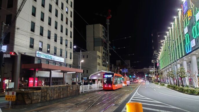 ロングシートの端っこにちょこんと座って、大街道まで乗車する。