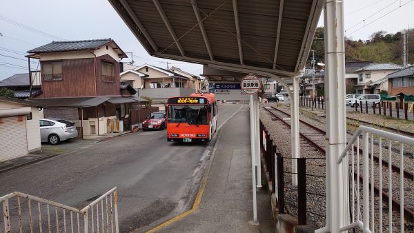 駅に戻ると北側のローターリーには、松山観光港への連絡バスが止まっていた。