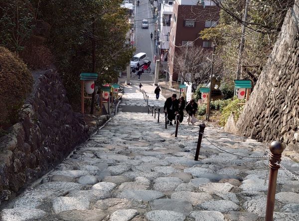 急勾配で手すりも無い135段の石段に少し怯えるが、何とか登りきる。