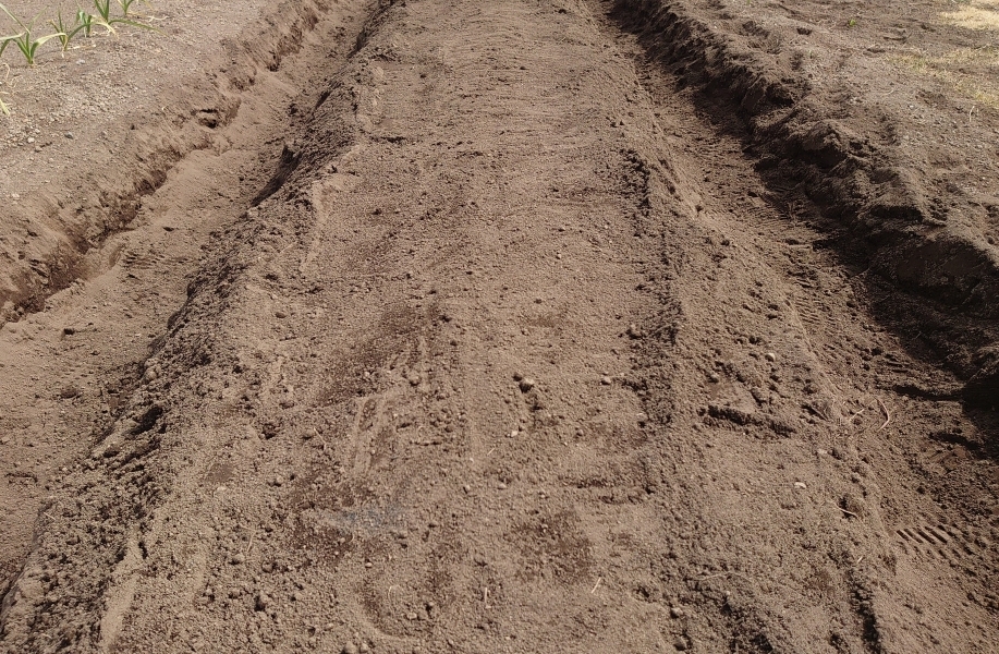 畝幅を80センチ取った上で、両端は30センチほど掘り、中央に土を盛る。