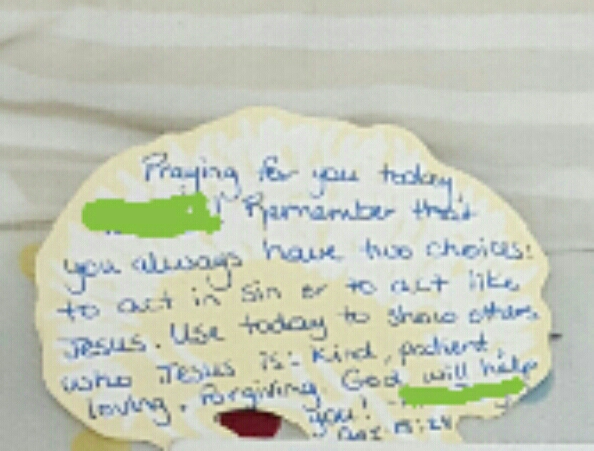 「あなたは、いつも二つから選ぶ事が出来る。罪な行動をするか、イエスキリストみたいに行動をする事が出来る。私は、あなたの事を祈ってる。」