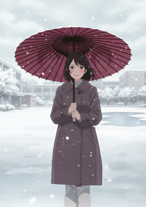 ――雪の降る日、あの日と同じ茜色の傘の下で、