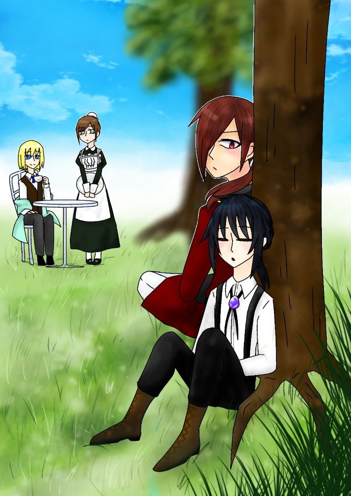 「だから赤目さん出てきちゃダメだってば…えっと、200どころか300も越えるなんて思っていなかったから、調子乗って描くつもりのなかった表紙を描いたそうです。あと、何だかんだ言ってキャラ気に入っちゃったから、だって」