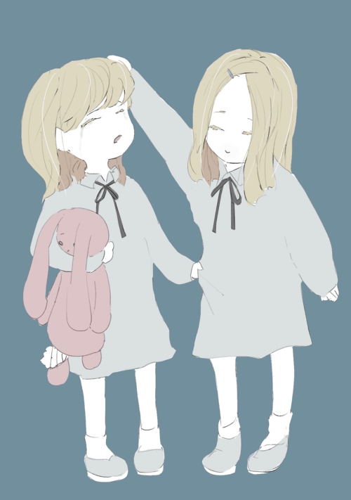 雨空の下で、すすり泣く少女。無色透明の涙が頬を伝う。