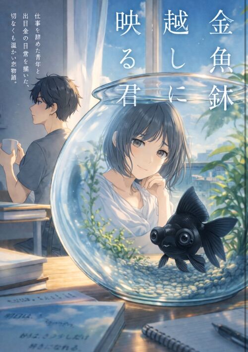 寺城忠三郎は新卒で入社した会社を、たった1週間で退職した。無気力に自宅に帰った忠三郎であったが、何と彼の自室で飼っていた出目金が喋り始めたのだ!慌てふためく忠三郎をよそに、出目金は自分は「黒坊主」と名乗り、忠三郎に金魚鉢で飼われて以来、金魚鉢越しに彼を見ていたという。 兎にも角にも、青年と喋る出目金という奇妙な二人?の生活がスタートした。最初は、喋る出目金という存在に戸惑いを隠せないでいた忠三郎だったが、黒坊主のざっくばらんで兄貴肌の性格に、次第に心を許していった。 いつしか、二人の間に人間と金魚という枠を越えた「友情」が芽生えていた。 そして、ある日、忠三郎は両親のプレゼントを選んでいた時計屋で、運命的な出会いを果たす。その人の名は中条絢。この美しい女性店員に忠三郎は一瞬で恋に落ちた。ただの客と店員。叶わぬ恋だと決めつけ、自分の想いを押し殺していた忠三郎だったが、中条とたまたま再開する機会があった。 連絡先を交換した二人は、食事や買い物をする仲となり、その度に中条に対する忠三郎の想いは募るばかりだった。 そんな中条には、人に言えない事情を抱えていた。 彼女の事情を知った忠三郎は、どう思うのか。そして、彼女への恋心にどうピリオドを打つのか。 そして、何より黒坊主との奇妙な共同生活の行く末は。 出目金との友情、そして切ない想い。大人の青春恋愛ファンタジー小説です!