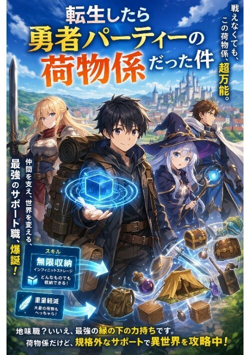 主人公はある日、異世界に転生するが、与えられた職業はまさかの「荷物係」。戦闘能力も魔法もない地味な役割に落胆するものの、「無限収納」と「重量軽減」という便利なスキルを持っていることに気づく。