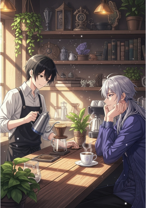 裏稼業から足を洗い、前世の記憶を頼りに長年の夢だった喫茶店「木漏れ日」を開いたレン。