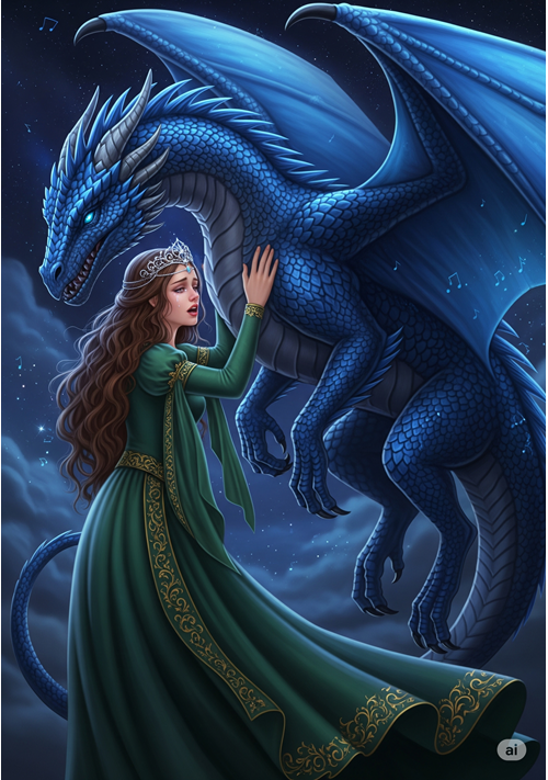 夜空を駆ける竜の背で、リリアは真の自由を手に入れる。二人は人間と竜が共存するとされる遥か西の大陸を目指し、リリアは「そこまで届く歌を歌いたい」「いつかこの歌が、人間と竜の間に残る深い溝を埋め、誰かの心を変えるなら――その時こそ、私はもう呪いの姫じゃなくなる」と希望を抱く。彼女の歌声は、もはや「呪い」ではなく、愛と希望、そして魂の自由を歌う新たな旋律となり、夜空に溶けていくのだった。