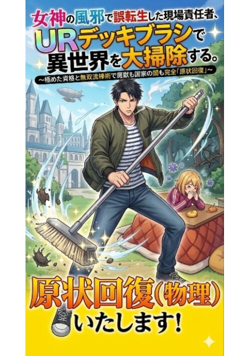 お詫びとして女神から適当に渡されたのは、絶対に壊れず、素材や長さを自由自在に変えられる【UR(ウルトラレア)デッキブラシ】。
