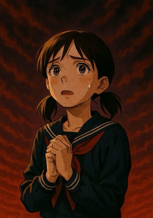 だが、話が進むにつれ、教室の空気は異様に冷え、窓の外の夕焼けは“異界の色”に染まり始める。