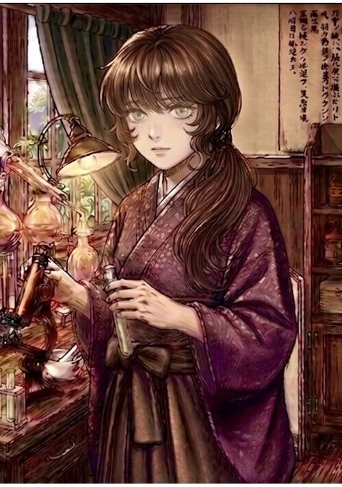 和紙と顔料、そしてフラスコに囲まれた彼女は、単なる「彩色助手」ではなかった。