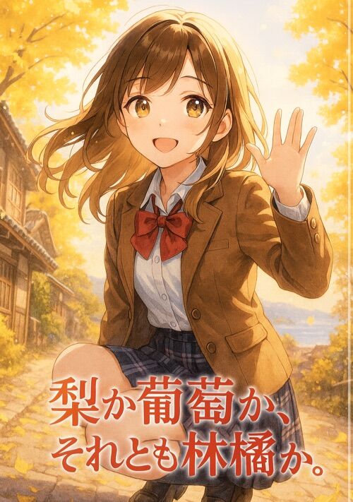 出会いは、心を熟れさせる果実。 三つの恋が描く、秋の青春譜。 長崎の小さな学園都市・青霞市。 高校二年の藤白晴人は、毎日をただ流されるように過ごしていた。 そんなある雨上がりの午後、落とし物の金色のヘアピンをきっかけに、 一人の少女・梨乃と出会う。 やがて彼の前に現れるのは、 群青のカーディガンを纏う人気者の先輩・紫苑、 そして静かな図書委員・紅葉。 梨のように優しく、葡萄のように揺れて、林檎のように深く―― 三つの果実が象徴する恋と思想が、 晴人の世界を少しずつ色づかせていく。 “優しさとは何か”“選ぶとはどういうことか” 誰もが通り過ぎる季節の中で、 少年は心の色をひとつずつ覚えていく。 ――青春の痛みと温かさが交錯する、 秋の果実のように静かで甘い恋の物語。